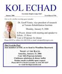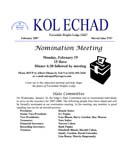Prior to May 2005, Kol Echad was developed one page at a time, photocopied, and then assembled. Consequently, there are no bulletins available for the period before this date.